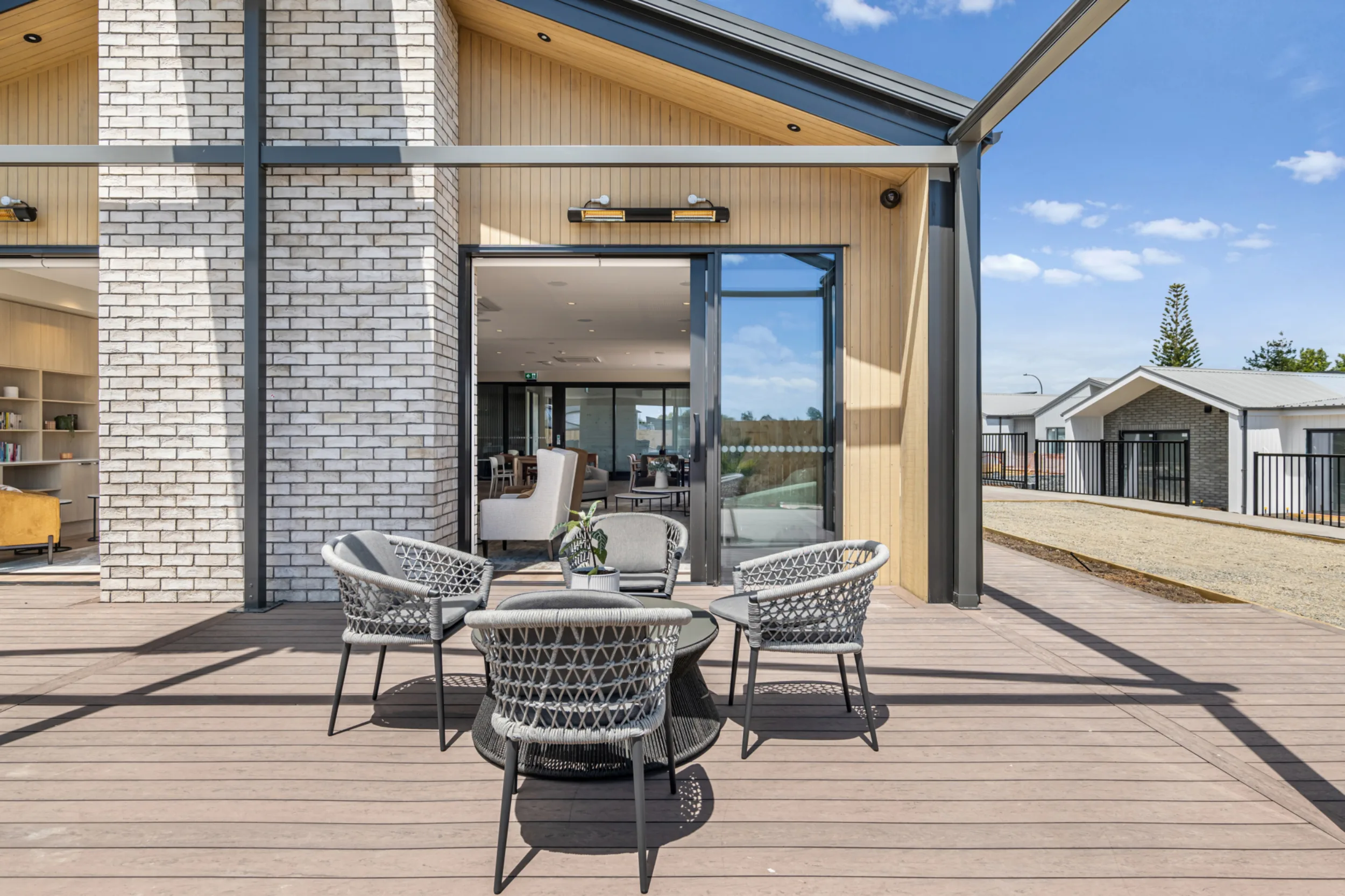 Vivid Living Karaka is more than just a place to live – it's a community designed to support ageing in place. The central Residents' Lounge, with its cozy fireplace, reading space, and BBQ patio, provides a welcoming space for residents to connect and enjoy life together.